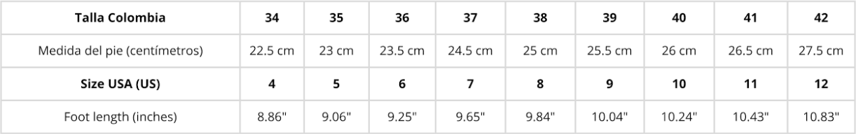 Nuestra horma es estándar, tanto en largo como en ancho. ¡Le recomendamos elegir su talla habitual!